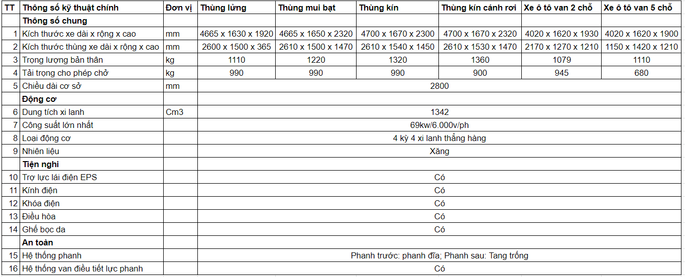 Quý khách xem thêm so sánh xe tải KenBo 990kg và xe tải Tera 100