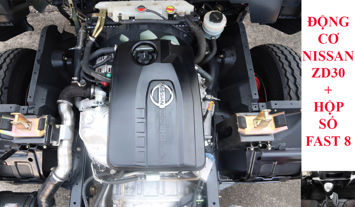 - Động cơ máy Nhật thương hiệu chính hãng Nissan ZD30, công suất 150PS, mô men xoắn cực đại 370N.m/1600-2600rpm;